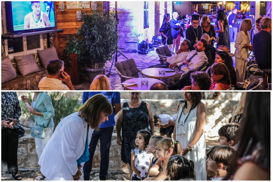 Το βράδυ της Κυριακής η Κατερίνα Σακελλαροπούλου παρακολούθησε σε καφενείο της Χάλκης τον νικηφόρο αγώνα της Εθνικής Ελλάδας με την Τσεχία για τη φάση των «16» του Ευρωμπάσκετ –σχετικές φωτογραφίες κυκλοφόρησαν και στα social media. Το πρωί της Δευτέρας, ολοκληρώνοντας την επίσκεψή της στο ακριτικό νησί, η Πρόεδρος της Δημοκρατίας μετέβη στα τοπικά σχολεία για την τελετή του αγιασμού με την ευκαιρία της έναρξης της σχολικής χρονιάς.