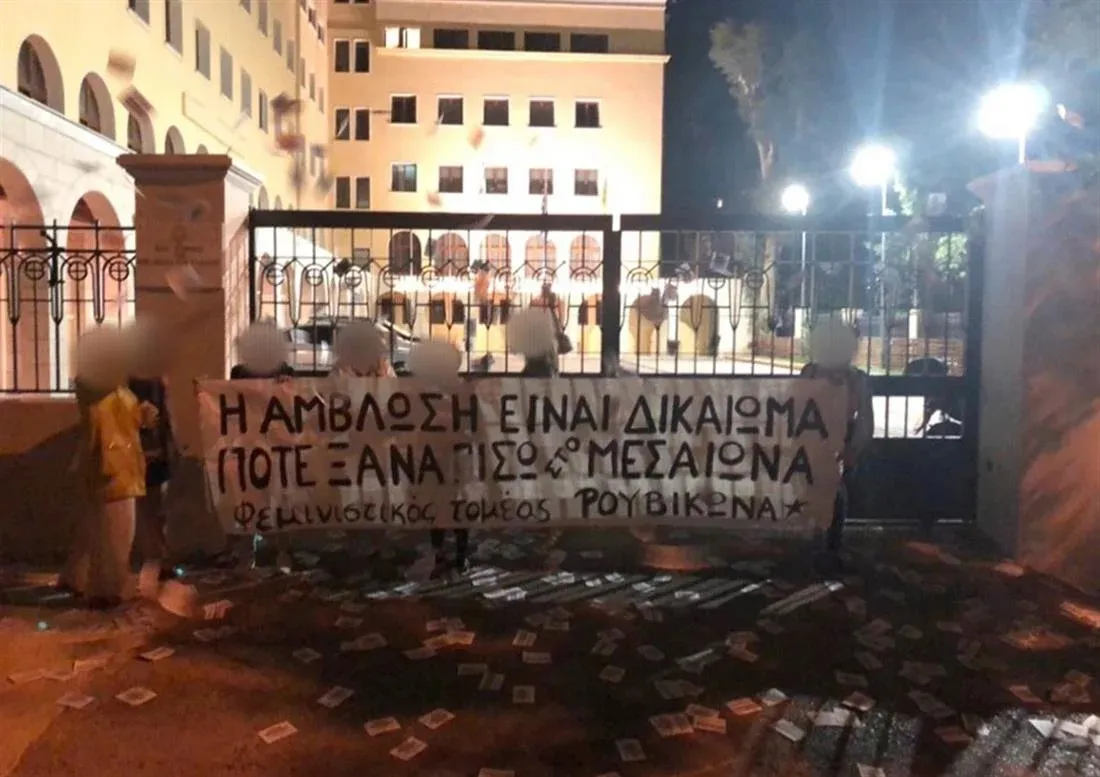 Με αφορμή την ανακοίνωση για το κήρυγμα κατά των αμβλώσεων στις εκκλησίες της χώρας, μέλη του «Ρουβίκωνα» άνοιξαν πανό με το σύνθημα «Η άμβλωση είναι δικαίωμα, ποτέ ξανά πίσω στον μεσαίωνα» και πέταξαν τρικάκια έξω από το κτίριο της Ιεράς Συνόδου.